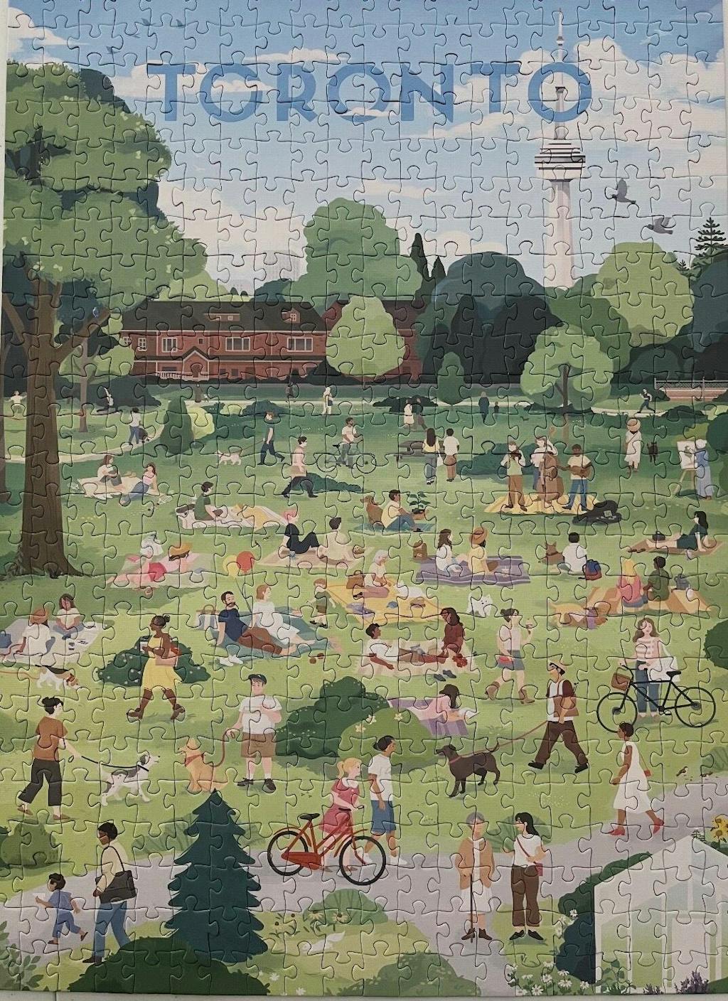 Spend a sunny afternoon in Toronto’s iconic Trinity Bellwoods Park with The Six in the Sun puzzle. Piece together a lively weekend scene filled with walkers, picnickers, and concertgoers, all set against the stunning backdrop of the city skyline and CN Tower. A vibrant celebration of Toronto life in the sunshine! Illustrated by Toronto artist, Nicolle Lalonde.